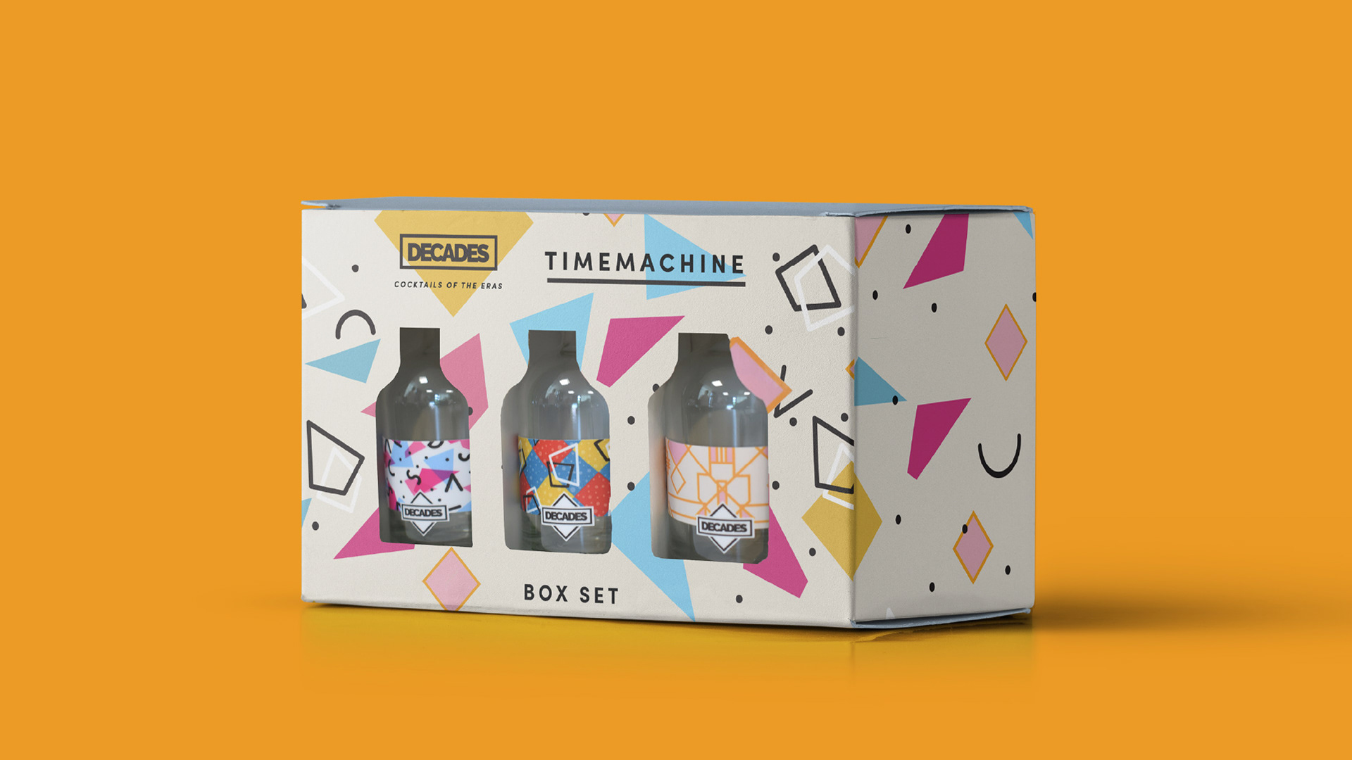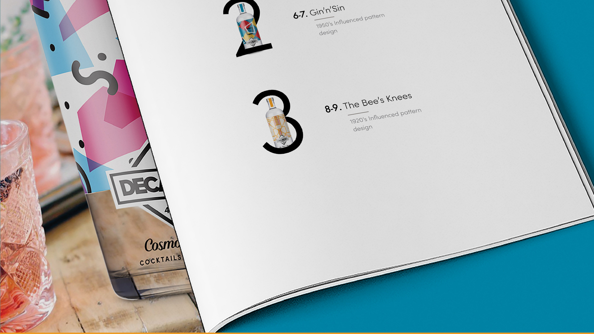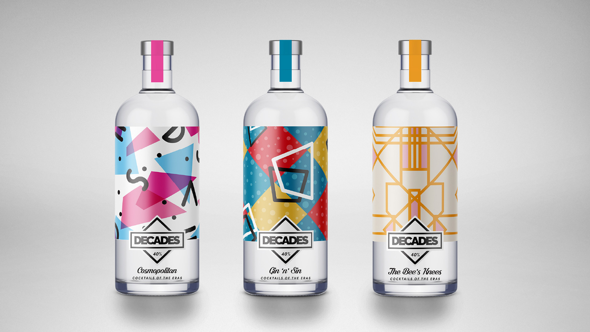 ‘Decades’ is a cocktail mix liquor brand, with inspiration from the eras. The brand has been developed through inspiration from pattern designs from 1920’s, 1950’s and 1990’s .