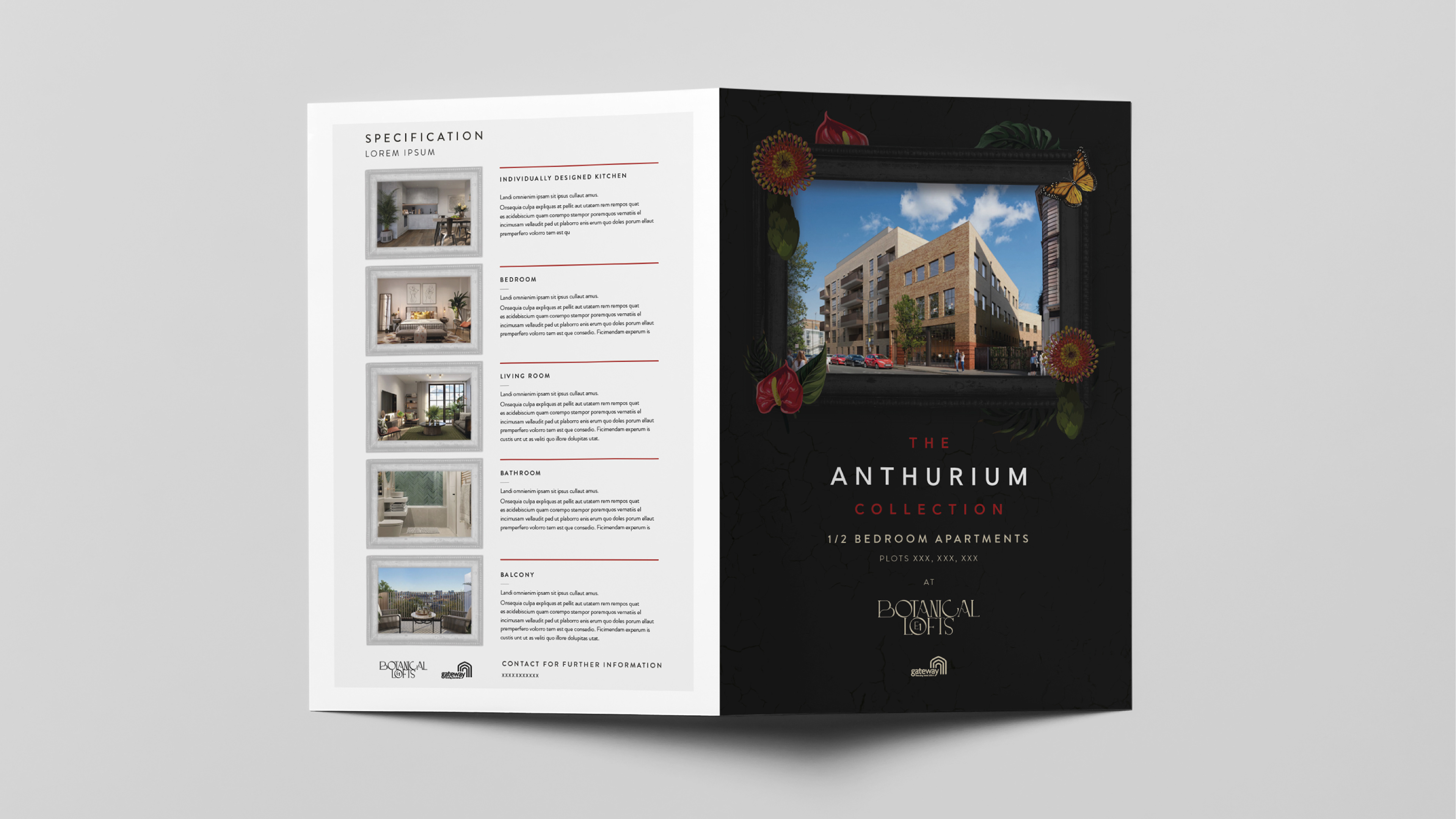 The brief on this occasion was to develop a new sub brand off the back of Botanical Lofts. Using the name Anthurium to suggest part of a botanical garden.